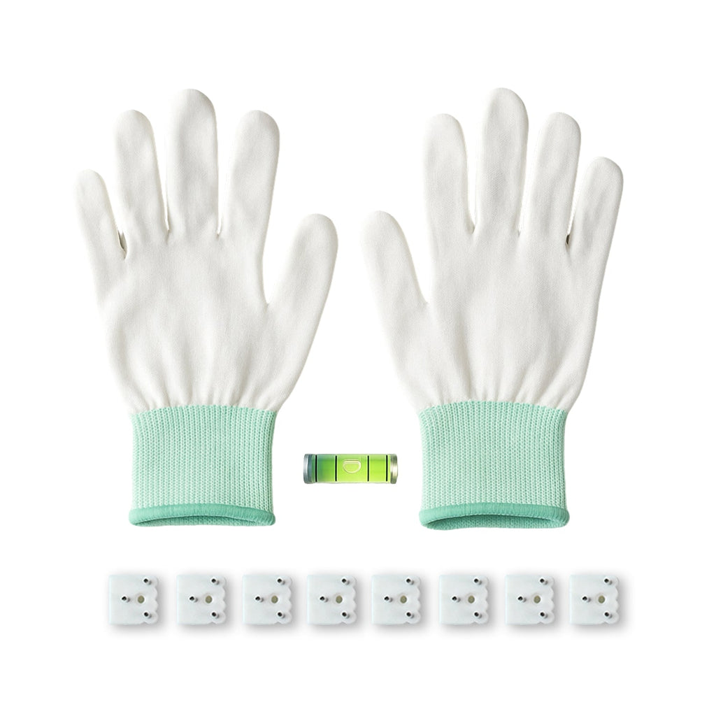 • Complete Hanging Kit – Includes gloves, hooks, and a level