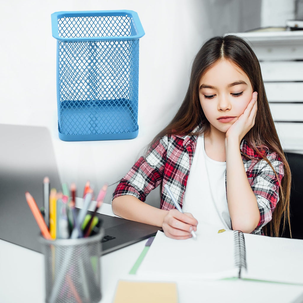 Pen Holder for Desk, Metal Mesh Holder Round Square Pen Cup Multifunctional Stationery Organizer for Office School Home (1 Pc)